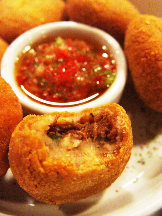 Bolinho de Virado à Paulista -homenagem da Kátia Barbosa à cidade de São Paulo - leva massa de feijão carioca recheada com couve, linguiça, bisteca e ovo