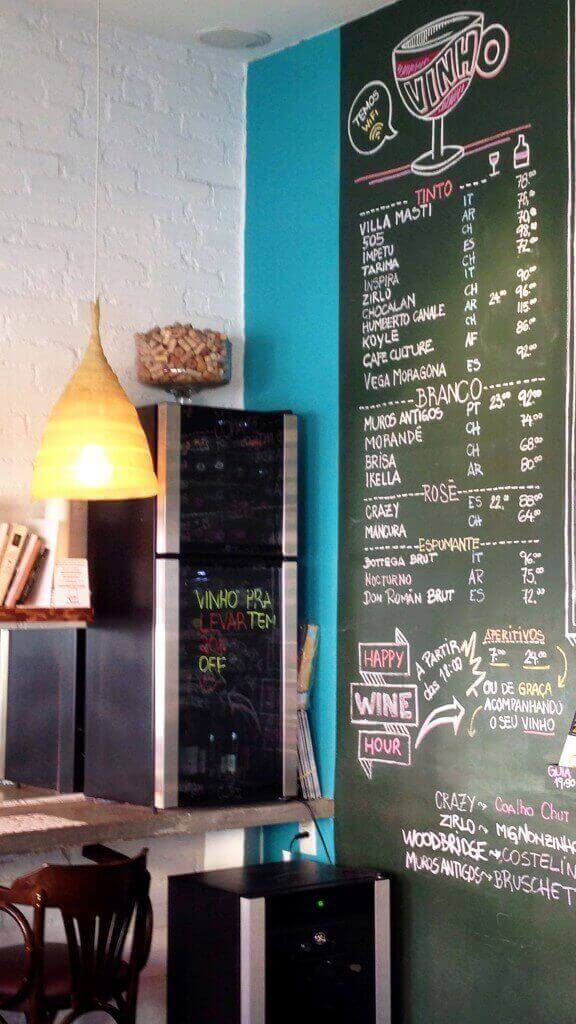 são os vinhos. Há uma seleção de taças e garrafas que podem ser escolhidas pelos clientes, com direito a petiscos para harmonizar. Está explicado porque o logo da casa é essa mistura de xícara de café com taça de vinho. Afinal, porque não reunir num mesmo lugar duas bebidas tão preciosamente únicas!