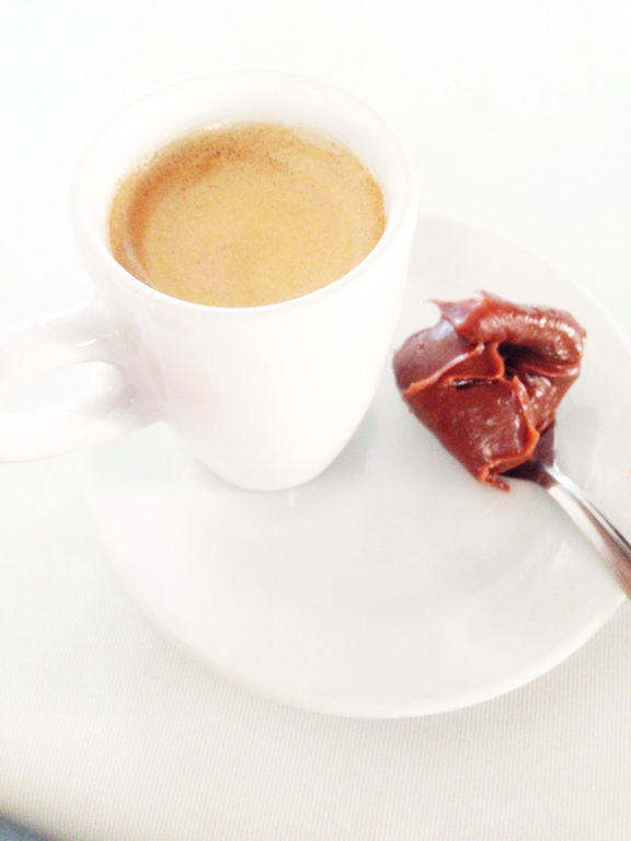 Ah, o café é acompanhado com uma colherada de brigadeiro.