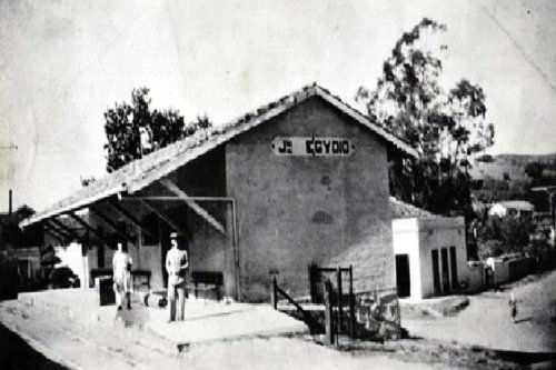 olha que legal essa foto que eu achei no site Estações Ferroviárias - tem a estação e o restaurante na cor clara e cheio de portas, ali ao fundo