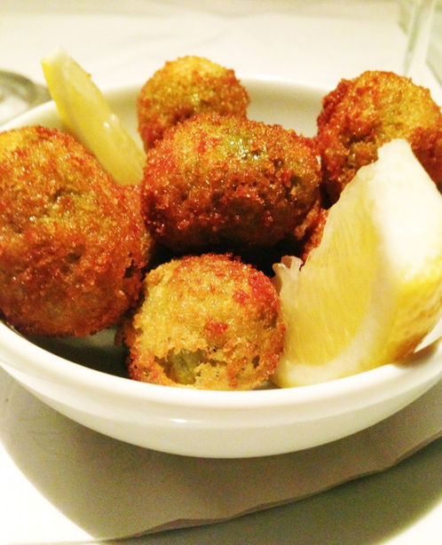 Grande Prosecco Brut italiano do Treviso, que acompanhou muito bem as olivas à moda de Ascoli (foto anterior) e o bacalhau mantecato ( foto abaixo).