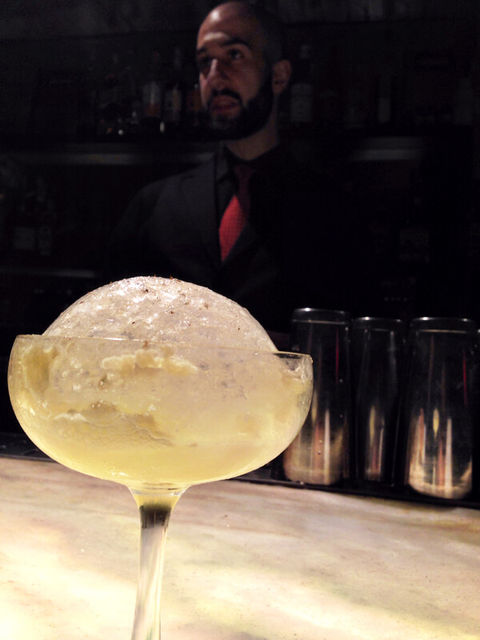 Enfim, tudo isso pra dizer que o SubAstor é um lugar para beber bons drinks! Um espaço para quem aprecia a boa coquetelaria. Não é um bar para “ver e ser visto” (embora a penumbra possa favorecer o flerte), nada apropriado para tirar selfies, reunir turmas para bate-papos ou ir com o objetivo específico de fazer uma refeição (tudo isso é possível no Bar Astor, basta voltar a subir as escadas) . Resumindo, é um lugar para beber bons drinks! A estrela é o bar, literalmente, o ponto mais iluminado da casa; o balcão de alabastro translúcido com iluminação interna, atravessa o espaço de ponta a ponta. Lá a mixologia tradicional ou criativa, é comandada com competência pelo bartender italiano Fabio la Pietra, um dos maiores nomes da coquetelaria no Brasil.
